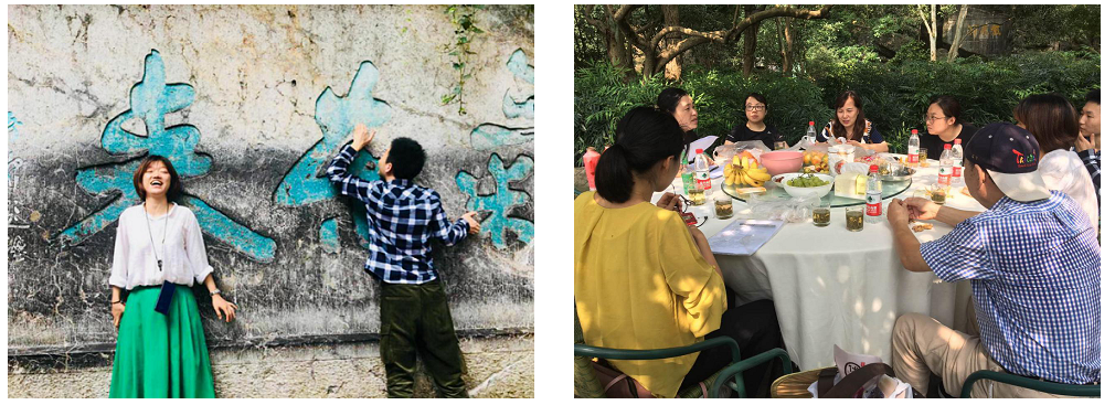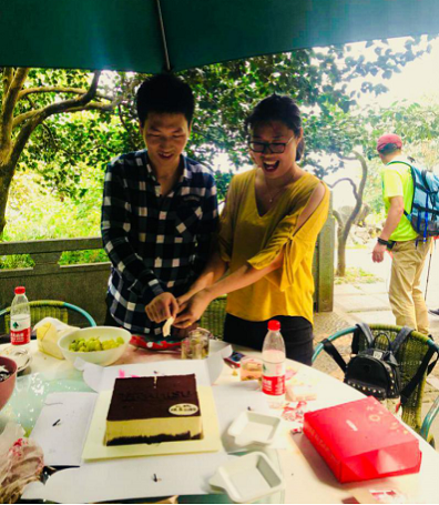 美好快樂的時(shí)光總是過得飛快,一不留神已經(jīng)是下午2點(diǎn)多。下山后,行政部小伙伴說,今天還有個(gè)驚喜環(huán)節(jié)---給小繆和Lily同學(xué)過生日,還準(zhǔn)備了一個(gè)大大美味的蛋糕,還有生日禮物。行政部的小伙伴真是有心了。悄悄地告訴你們,Lily就是我啦。當(dāng)時(shí)就差眼淚水飆出來啦!大家唱生日歌,我和小繆一起許愿、吹蠟燭、切蛋糕,此情此景真的美好而難忘。