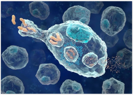 ? ? ? ?巨噬細胞已經(jīng)存在于這個世界上很久了。事實上,巨噬細胞所使用的攝取技術(shù)實際上是阿米巴原蟲捕食策略的改進版,而阿米巴原蟲已經(jīng)在地球上生存了大概25億年了。那么為什么這種細胞被叫做巨噬細胞(Macrophage)呢?“Macro”的意思是“大”,顯然巨噬細胞的體型很龐大;而“phage”來源于希臘語,意思是“吃”。所以從名字上就可以看出來巨噬細胞細胞是一個名副其實的“大吃貨”。除了可以抵御 “侵略者”外,它其實還是一個垃圾收集器,而且?guī)缀跏裁炊汲裕稽c也不挑食。免疫學(xué)家利用巨噬細胞的這種“好胃口”,給它喂一些鐵屑并讓它吞食,然后利用一小塊磁鐵便可以輕松地將巨噬細胞從其他細胞中分離出來。 圖片5:巨噬細胞