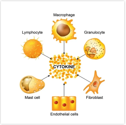 ? ? ? ?當(dāng)巨噬細胞消滅扎在你腳上的木屑上的細菌時,它們會釋放一些可以增加傷口附近血流量的化學(xué)物質(zhì),導(dǎo)致你的腳趾變紅。一些化學(xué)物質(zhì)還會引起血管壁細胞的收縮,使毛細血管向組織中滲出液體,導(dǎo)致傷口處的腫脹。另外,巨噬細胞釋放的化學(xué)物質(zhì)還會刺激傷口周圍組織中的神經(jīng),將疼痛的信號傳至大腦,警示你的腳趾處出現(xiàn)了不正常的現(xiàn)象。 ? ? ? ?在這場與細菌的戰(zhàn)役中,巨噬細胞生產(chǎn)并分泌一些叫作細胞因子(Cytokine)的蛋白質(zhì)。這是一種激素樣的信號,促進了免疫系統(tǒng)細胞間的交流。一些細胞因子會警告巨噬細胞和其他一些在附近毛細血管中游蕩的免疫細胞:戰(zhàn)斗開始了!于是這些細胞便紛紛離開血液血液循環(huán),加入到了抗擊迅速增殖細菌的戰(zhàn)斗之中。由于固有免疫系統(tǒng)主導(dǎo)的清除“入侵者”的戰(zhàn)斗,你的腳趾很快就會產(chǎn)生強烈的炎癥反應(yīng)。 圖片8:細胞因子
