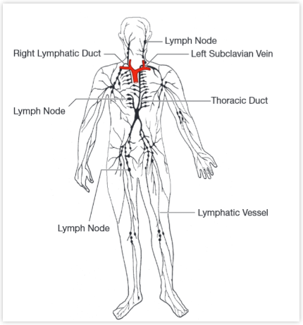 ▉ 次級淋巴器官 ? ? ? ?如果你曾思考過獲得性免疫系統(tǒng)是如何在病原攻擊機體時被激活的,你可能都會開始懷疑這是否會發(fā)生。畢竟,人的機體中僅有100到1000個擁有針對規(guī)定“入侵者”TCR的T細胞,而這些T細胞的激活需要與已經看到“入侵者”的抗原提呈細胞聯(lián)絡。假定這些T細胞和抗原提呈細胞分布于全身各處,那么在“入侵”變得一發(fā)不可收拾之前,這種情況不太可能出現(xiàn)。幸運的是,為了讓這樣一種系統(tǒng)工作成為可能,大自然設計了次級淋巴器官(secondary lymphoid organ),其中我們最熟悉的就是淋巴結。你可能對淋巴系統(tǒng)還不是很熟悉,那么下面就讓我們簡單介紹一下。 ? ? ? ?在你的家里有兩套管道系統(tǒng),一套系統(tǒng)提供來自水龍頭的水,這套系統(tǒng)是由一個水泵提供壓力的加壓系統(tǒng)。而另一套系統(tǒng)是排水管道系統(tǒng),包括水池、淋浴和衛(wèi)生間的排泄管。第二套系統(tǒng)沒有壓力,水僅僅是沿著排水溝流,直至流入下水道。這兩套系統(tǒng)的聯(lián)系之處就在于廢水的循環(huán)和再利用過程。 圖片10 ? ? ? ?人體中的管道系統(tǒng)與此非常類似。我們體內有一套壓力系統(tǒng)即心血管系統(tǒng),血液在其中由心臟泵向全身各處。但人體還有另一套管道系統(tǒng)——淋巴系統(tǒng),該系統(tǒng)是無壓力的,其中引流的是由血管壁滲入組織中的液體,即淋巴液。如果沒有這套系統(tǒng),我們的組織就會充滿液體,看起來就像 “面團寶寶(Pillsbury Doughboy)”一樣。幸運的是,淋巴系統(tǒng)將下肢組織中的淋巴液收集于淋巴管中,并在肌肉收縮的影響下,通過一系列具有單向流動瓣膜的淋巴管,匯集于軀體上部。這些淋巴液以及來自于上部軀體左側的淋巴液會被收集進入胸導管,進而匯入左鎖骨下靜脈,重新循環(huán)進入血液。同樣的,來自于上部軀體右側的淋巴液會被收集進入右淋巴導管,進而匯入右鎖骨下靜脈。在下面這張圖中可以看到,淋巴液在回到血液的過程中,經過了一系列的中間站——淋巴結。 圖片11:次級淋巴器官 ? ? ? ?在人體內大約有500個淋巴結,其中有的淋巴結非常小,有的卻和孢子甘藍一樣大。大多數(shù)淋巴結由淋巴管相連接,排成鏈狀。入侵的病原如細菌、病毒等,可以被淋巴液帶到附近的淋巴結,而組織中已經攝取了外源抗原的抗原提呈細胞會遷移至淋巴結中,展示它們的“貨物”。同時,T細胞和B細胞會從一個淋巴結遷移至另一個淋巴結,循環(huán)往復,尋找和它們“命中注定”的抗原。因此,淋巴結實際上發(fā)揮了“約會酒吧”的功能,在這里,T細胞、B細胞、抗原提呈細胞、以及抗原為了交流和激活的目的匯聚在一起。將這些細胞和抗原聚集在淋巴結的狹小空間里,極大地增加了他們相互作用并有效激活適應性免疫系統(tǒng)的概率。 圖片12