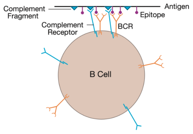 ? ? ? ?來(lái)源:藥學(xué)速覽 ▉ 導(dǎo)讀 ? ? ? ?上一期推送中我們?yōu)榇蠹以敿?xì)介紹了B細(xì)胞及B細(xì)胞受體。相信大家應(yīng)該還記得B細(xì)胞選擇出用于編碼BCR重鏈和輕鏈蛋白的基因片段的原理與機(jī)制。那么,B細(xì)胞受體是如何傳遞信號(hào)的呢??jī)H僅依靠B細(xì)胞受體能否實(shí)現(xiàn)信號(hào)傳遞的過(guò)程呢?接下來(lái)的這一期推送中,我們將詳細(xì)為大家講述B細(xì)胞受體信號(hào)傳遞的過(guò)程。 ▉? B細(xì)胞信號(hào)傳遞 ? ? ? ?在了解BCR如何傳遞信號(hào)之前,我們先來(lái)為大家介紹兩個(gè)概念:一個(gè)給定的BCR所識(shí)別的抗原稱為同源抗原,同源抗原上與BCR真正結(jié)合的微小區(qū)域稱為表位。(例如,如果一個(gè)B細(xì)胞的同源抗原是流感病毒表面的一個(gè)蛋白質(zhì),那么表位就指的是該蛋白質(zhì)與BCR結(jié)合的部分(通常為6-12個(gè)氨基酸))。所以傳遞信號(hào)的過(guò)程就應(yīng)該是:BCR識(shí)別了與它匹配的表位后,把這種識(shí)別信號(hào)傳遞到細(xì)胞核,在細(xì)胞核處參與激活B細(xì)胞的基因被打開(kāi)或關(guān)閉。 ? ? ? ?但從下圖來(lái)看,BCR跨過(guò)細(xì)胞膜進(jìn)入細(xì)胞內(nèi)部的重鏈部分在長(zhǎng)度上僅為幾個(gè)氨基酸——BCR的H鏈胞內(nèi)部分太短了以至于不能直接傳遞抗原刺激信號(hào)。讀到這里你們可能想問(wèn),這種BCR是如何把發(fā)現(xiàn)了它的表位的信號(hào)傳遞到細(xì)胞核的呢? ▉? lgα和lgβ ? ? ? ?B細(xì)胞非常聰明。為使BCR能順利傳遞它所看到的信號(hào),B細(xì)胞配備了兩種輔助蛋白,分別是Igα和 Igβ,它們與重鏈蛋白結(jié)合并伸入細(xì)胞內(nèi)部(如上圖所示,可以輔助BCR完成信號(hào)的傳導(dǎo))。所以實(shí)際上,完整的B細(xì)胞受體包括兩部分:細(xì)胞外能識(shí)別抗原但不能傳遞信號(hào)的Hc/Lc部分,以及能傳遞信號(hào)的Igα和Igβ蛋白(讀者們需要特別注意的是,Igα和Igβ蛋白對(duì)細(xì)胞外發(fā)生的情況一概不知。在成熟B細(xì)胞表面,BCR總是和負(fù)責(zé)傳遞抗原刺激信號(hào)的Igα/Igβ(CD79a/b)異二聚體共同表達(dá),形成BCR-Igα/Igβ復(fù)合體(BCR復(fù)合物))。 ▉? Crosslinked ? ? ? ?為了產(chǎn)生足夠強(qiáng)的激活信號(hào),B細(xì)胞表面上許多BCR必須得緊密聚集到一起。當(dāng)抗原與B細(xì)胞接觸后,B細(xì)胞表面的多個(gè)BCR復(fù)合物將會(huì)與抗原結(jié)合而發(fā)生聚合,免疫學(xué)家把這種現(xiàn)象稱為“crosslinked”。例如,當(dāng)BCR與單個(gè)抗原上多次出現(xiàn)的表位(比如由氨基酸序列重復(fù)出現(xiàn)而來(lái)的蛋白質(zhì))相結(jié)合時(shí),BCR可以聚集到一起,形成BCR簇。此外,當(dāng)BCR與入侵者表面緊密靠近的單個(gè)抗原上的表位結(jié)合時(shí),也可能使BCR被簇集。 ? ? ? ?Igα和Igβ蛋白的尾部可與細(xì)胞內(nèi)的信號(hào)分子相互作用。當(dāng)足夠強(qiáng)的這種相互作用聚集在某一個(gè)區(qū)域時(shí),就會(huì)引發(fā)一個(gè)酶鏈?zhǔn)椒磻?yīng),可以向細(xì)胞核傳遞“BCR參與了”的信號(hào)。因此,成功發(fā)送信號(hào)的訣竅就是要把大量的Igα和 Igβ分子聚集在一起(這就是 BCR簇集的作用)。BCR簇集后能夠使足夠多的Igα和Igβ分子聚集在一起,并啟動(dòng)了連鎖反應(yīng)傳遞 “BCR 參與”信號(hào)。所以說(shuō),BCR交聯(lián)是傳遞信號(hào)的關(guān)鍵。 ▉? 補(bǔ)體受體 ? ? ? ?讀者們應(yīng)該還記得在前幾期的推送中提到的補(bǔ)體蛋白片段(如C3b)可以與入侵者結(jié)合,這個(gè)標(biāo)記標(biāo)簽表明入侵者是危險(xiǎn)的,能夠被先天免疫系統(tǒng)識(shí)別,因此先天免疫系統(tǒng)成員(如巨噬細(xì)胞)就參與到這場(chǎng)戰(zhàn)斗中。巧妙的是,由補(bǔ)體片段調(diào)理的抗原也能引起適應(yīng)性免疫系統(tǒng)的“警覺(jué)”!具體如下所述。 ? ? ? ?除B細(xì)胞受體及其Igα和Igβ外,B細(xì)胞表面還有另一種蛋白質(zhì)也可能在信號(hào)傳遞中發(fā)揮重要的作用。這種蛋白質(zhì)是一種受體,它能與正在修飾入侵者的補(bǔ)體片段相結(jié)合(也就是說(shuō),補(bǔ)體與抗原結(jié)合,B細(xì)胞上的補(bǔ)體受體再與該補(bǔ)體結(jié)合)。因此,對(duì)被調(diào)理的抗原而言,B細(xì)胞上有兩種能與其結(jié)合的B細(xì)胞受體——識(shí)別抗原上特異性表位的BCR和識(shí)別被修飾抗原的補(bǔ)體受體。被調(diào)理的抗原這時(shí)就像一個(gè)“鉗夾”,把BCR和補(bǔ)體受體聚集在一起(如下圖所示)。 ? ? ? ?當(dāng)BCR和補(bǔ)體受體通過(guò)被調(diào)理的抗原以這種方式相交聯(lián)時(shí),BCR所要傳遞的信號(hào)被大大地放大了。補(bǔ)體受體對(duì)信號(hào)傳遞有重要的影響:補(bǔ)體受體參與后,意味著把“BCR參與”的信號(hào)傳遞到細(xì)胞核所必須簇集的 BCR 數(shù)目可至少減少100倍!在入侵者進(jìn)攻的起始階段,可與B細(xì)胞受體交聯(lián)的抗原的數(shù)量有限時(shí),這個(gè)體系的功能尤為重要。通過(guò)B細(xì)胞的共受體識(shí)別被調(diào)理的入侵者,有助于使B細(xì)胞對(duì)先天免疫系統(tǒng)已經(jīng)確認(rèn)為危險(xiǎn)的抗原更加敏感。這就是先天免疫系統(tǒng)“指導(dǎo)性”功能的一個(gè)很好的例子。確實(shí),一般來(lái)說(shuō),入侵者是否危險(xi
