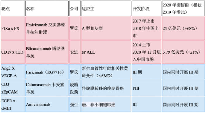 treatment effect: 1( antibody for cancer cell)+1(antibody for T cell)>2 ? ? ? ?結(jié)合雙抗原表位的雙抗:不同于結(jié)合兩個(gè)不同抗原的雙抗,這種雙抗則是選擇結(jié)合同一個(gè)抗原不同的兩個(gè)抗原表位,通過(guò)抗原交聯(lián)和聚集增強(qiáng)結(jié)合強(qiáng)度,從而模仿抗體混合物和多克隆抗體的效果。目前國(guó)內(nèi)百濟(jì)神州引進(jìn)的雙抗ZW25(Zanidatamab)就是這種作用機(jī)制,通過(guò)結(jié)合兩個(gè)非重疊的HER2表位可以雙重阻斷HER2信號(hào)、增強(qiáng)結(jié)合并去除細(xì)胞表面的HER2蛋白、強(qiáng)有力的抗體效應(yīng)子功能,以加強(qiáng)在患者中的抗腫瘤活性。 ? ? ? ?模擬輔因子:羅氏一款雙抗便是通過(guò)模擬輔酶因子(FVIII),將酶(FIXa)與底物(FX)拉近,從而使酶對(duì)底物進(jìn)行活化,最終形成活化的底物,用來(lái)治療因?yàn)镕VIII缺失而造成凝血障礙的罕見(jiàn)病A型血友病。該藥2017年于美國(guó)上市,可以有效地減少血友病的出血量及出血頻率。由于該藥作為預(yù)防性治療,年治療費(fèi)用高達(dá)40萬(wàn)美元,目前上市僅四年,銷量就達(dá)到了24億美元,國(guó)外機(jī)構(gòu)預(yù)測(cè)2022年,年銷售達(dá)45億美元。 (https://link.springer.com/article/10.1007/s12185-018-2545-9;Emicizumab, a humanized bispecific antibody to coagulation factors IXa and X with a factor VIIIa-cofactor activity) ▉ 已上市或在III期臨床中的雙特異性抗體 ▉雙特異性抗體未來(lái)發(fā)展趨勢(shì) ? ? ? ?展望未來(lái),許多處于發(fā)展初期有前途的概念已嶄露頭角。 ? ? ? ?1、 IGM Biosciences公司借助帶有J鏈(例如IgM和IgA)抗體類的自然結(jié)構(gòu),在J鏈上連接了效應(yīng)細(xì)胞靶向臂,這樣就可以組裝成1+10的雙抗,目前已有一款雙抗處于臨床I期階段,其中14人中有9人腫瘤明顯縮小,展示出了比較好的臨床效果。 ? ? ? ?2、 另外一個(gè)比較新穎的雙抗概念是,遞送mRNA,DNA到體內(nèi)轉(zhuǎn)錄后表達(dá)雙抗,均在動(dòng)物體內(nèi)展示出較好的腫瘤清除。在工業(yè)制備上,mRNA和DNA的生產(chǎn)要比蛋白更快,這極可能會(huì)加速新雙抗的臨床開(kāi)發(fā)。尤其是DNA相對(duì)于mRNA或者抗體蛋白,不僅生產(chǎn)成本低,穩(wěn)定性高,對(duì)于長(zhǎng)期保存及運(yùn)輸提供了極大便利。這種定向的雙抗DNA遞送可用于抗病毒、細(xì)菌感染,極有可能成為病毒疫苗的安全替代品。 ? ? ? ?3、 另外一種新概念則是給溶瘤病毒或者CAR-T加裝雙抗或者受體蛋白,達(dá)到靶向遞送,并在腫瘤微環(huán)境中發(fā)揮功能。 ? ? ??如涉及知識(shí)產(chǎn)權(quán)請(qǐng)與我司聯(lián)系