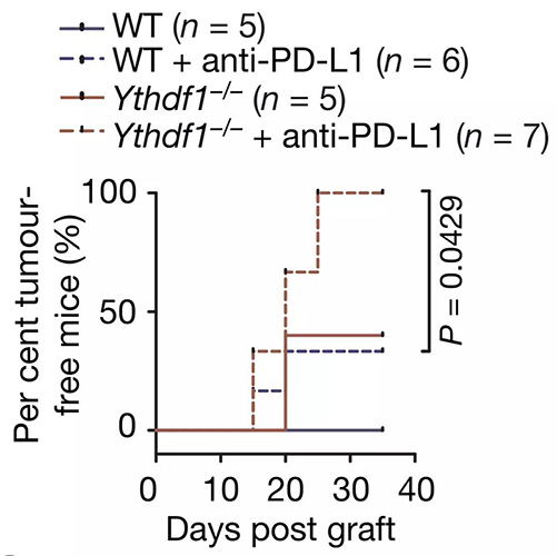 “當我們將YTHDF1敲除與PD-L1抗體聯(lián)合使用時,我們幾乎控制住了所有小鼠的腫瘤,”何川說[3]。 ? ? ? ? ? ? ? ? ? ? ? ? ? ? ? ? ??