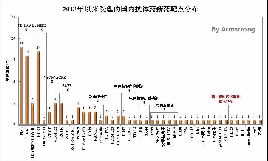附表 2013年來(lái)各藥企受理的抗體藥物