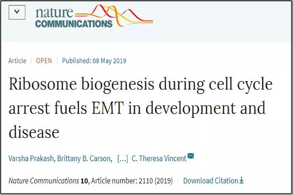 這項(xiàng)研究于2019年5月8日,發(fā)表在頂級(jí)學(xué)術(shù)期刊Nature Communications上。研究團(tuán)隊(duì)首次證明,癌細(xì)胞高超的上皮-間質(zhì)轉(zhuǎn)化(EMT)能力受到核糖體生物合成的調(diào)控。