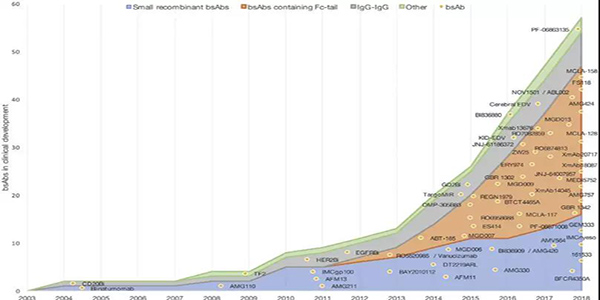 評估這些藥物的臨床試驗證明,人們對bsAbs作為治療癌癥的一種方法非常感興趣。bsAb目前用于臨床實踐,但沒有一種正在進行癌癥治療的三期臨床試驗。大多數(shù)被評估的bsAbs具有相同的作用機制:免疫細胞與腫瘤細胞的結(jié)合。在遞送有效載荷方面,使用bsAbs的熱情似乎由于諸如click化學(xué)等簡單的共軛方法的出現(xiàn)而有所減弱。 臨床前研究表明,免疫細胞參與的bsAbs與抗pd1、抗pd - l1等免疫調(diào)節(jié)劑聯(lián)合使用后,其抗腫瘤作用增強。最初的臨床結(jié)果證實了這一點,但還需要更多的數(shù)據(jù)。將進入臨床試驗的不同而新穎的bsAbs結(jié)構(gòu)也為使用分子成像揭示其體內(nèi)行為提供了強有力的論據(jù)。近年來,bsAb已成為一種多用途的工具,但除了blinatumomab,它還沒有導(dǎo)致臨床突破。然而,由于越來越容易生產(chǎn)以及雙特異性抗體獨特的作用機制,bsAbs可能成為一個有價值的抗腫瘤軍火庫的補充。