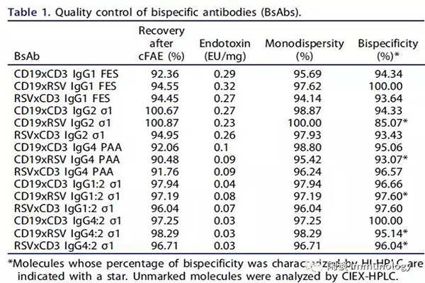 1.?各亞型雙特性抗體分子質(zhì)量控制