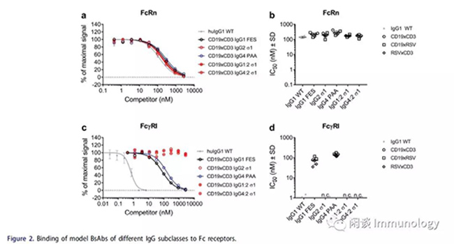 2.?各亞型BsAb和Fc受體的結(jié)合能力