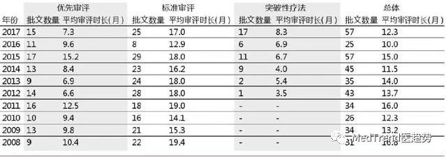 ? ? ?? ?根據(jù)上表顯示,2017年標(biāo)準(zhǔn)審評時間為17個月,而進入優(yōu)先審評的藥物為7.3個月,突破性療法的審評時間為8.3個月。相比標(biāo)準(zhǔn)審評時間減少10個月左右。Kymriah和Yescarta這些優(yōu)先審評路徑下的藥物獲批時限約為7.3個月,達到2013年以后的最快速度。