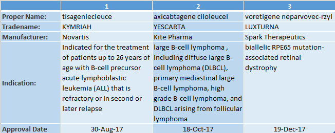 ▲FDA批準(zhǔn)的3種基因療法(信息來源:FDA官網(wǎng))