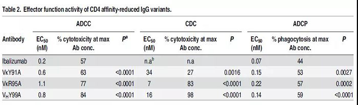 ? MedImmune的科學(xué)家發(fā)現(xiàn),降低親和力反而使抗體的ADCC活性明顯增強。通過點突變改造CD4抗體Ibalizumab(中裕新藥)、EGFR抗體GA201、不同親和力的HER2抗體,結(jié)合常數(shù)基本保持不變,但解離速率明顯加快。結(jié)果,低親和力的抗體比原抗體表現(xiàn)出更強的ADCC活性。
