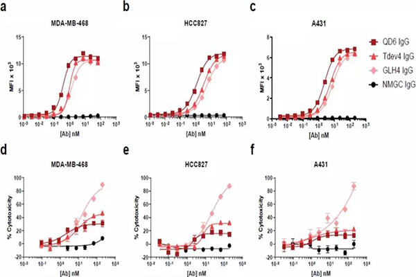 下圖中abc突變后對EGFR細胞的結(jié)合不變,但def中低親和力的CDC活性均明顯增強。?