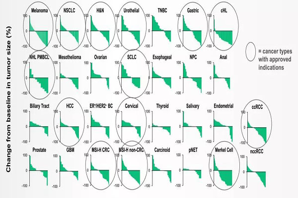 ▲PD-1抗體藥物在超過(guò)20種腫瘤治療中療效顯著(默沙東官網(wǎng))