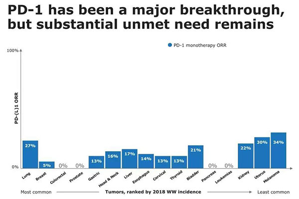 ▲單用情況下PD-1藥物的響應(yīng)率(強(qiáng)生官網(wǎng))