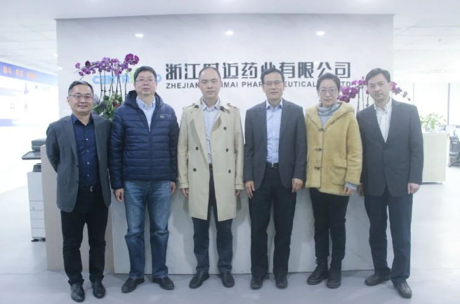 ? ? ? ?2023年3月17日,杭州市經(jīng)信局副局長(zhǎng)李明松,中小企業(yè)服務(wù)中心主任王洪祥等一行領(lǐng)導(dǎo)蒞臨時(shí)邁藥業(yè)走訪(fǎng)調(diào)研,關(guān)心企業(yè)發(fā)展,為企業(yè)加油鼓勁,提供精準(zhǔn)服務(wù)。時(shí)邁藥業(yè)董事長(zhǎng)孝作祥博士、財(cái)務(wù)副總裁兼董秘任為榮先生、研發(fā)副總裁周東文博士等參與接待,對(duì)各位領(lǐng)導(dǎo)的到來(lái)表示熱烈歡迎。