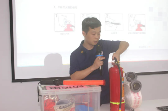 ? ? ? ?陳教官就消防工作的日常管理與檢查、消防隱患的排查、疏散逃生的基本常識、突發(fā)火災(zāi)的應(yīng)急和預(yù)防、干粉滅火器的使用方法和火場逃生技巧進(jìn)行了詳細(xì)示范講解。
