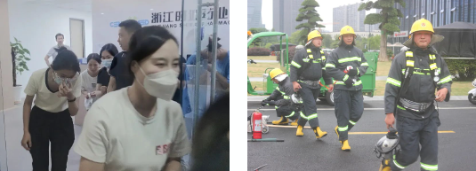 ? ? ? ?“各就各位,演練開始?!彪S著尖銳的警報(bào)聲響起,時邁藥業(yè)實(shí)驗(yàn)室內(nèi)發(fā)生“火情”,公司指揮組、通訊組、滅火組、防護(hù)組、疏散組有序開展工作,并在第一時間撥打園區(qū)消控中心及119火警電話。園區(qū)消控中心立刻奔赴現(xiàn)場,按照應(yīng)急預(yù)案開展行動,救援人員按照“1分鐘響應(yīng)啟動、3分鐘到場撲救、5分鐘協(xié)同作戰(zhàn)”要求穿戴防護(hù)服展開救援工作。在多方緊密配合下,現(xiàn)場火情得到有效處置,所有人員安全撤離。