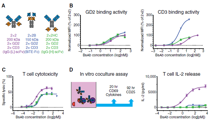 內(nèi)容來源: Santich B H, Park J A, Tran H, et al. Interdomain spacing and spatial configuration drive the potency of IgG-[L]-scFv T cell bispecific antibodies[J]. Science Translational Medicine, 2020, 12(534). |