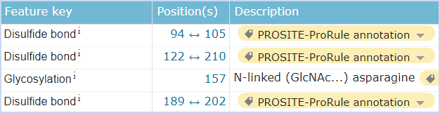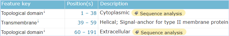 圖6 LLT1的結(jié)構(gòu)信息,摘自Uniprot.org。LLT1全長為191個氨基酸,保外域為103~184,其中含有2對鏈內(nèi)二硫鍵,并存在2個N糖基化位點。 ? ? ? ?考慮到如果我們篩選一種阻斷CD161-LLT1結(jié)合的抗體,N糖基化如果影響了表位的構(gòu)象,那么抗體的結(jié)合也會受到N糖基化的影響。如果付諸于行動,這個修飾的問題是無法繞開的。