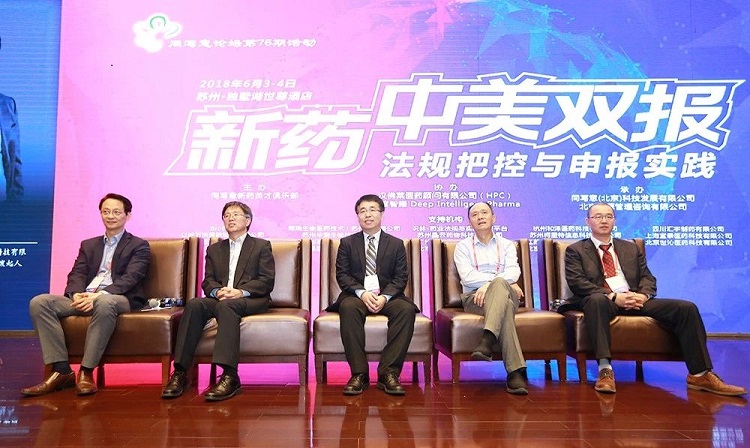 討論嘉賓(照片左起):前華海藥業(yè)副總裁兼華海美國高級(jí)副總裁 胡江濱、前FDA的CMC審評(píng)專家?杜新、印度太陽藥業(yè)監(jiān)管事務(wù)副總裁?孫志剛、和記黃埔醫(yī)藥資深副總裁 吳振平、精鼎(PAREXEL)咨詢部門副總裁 張明平。